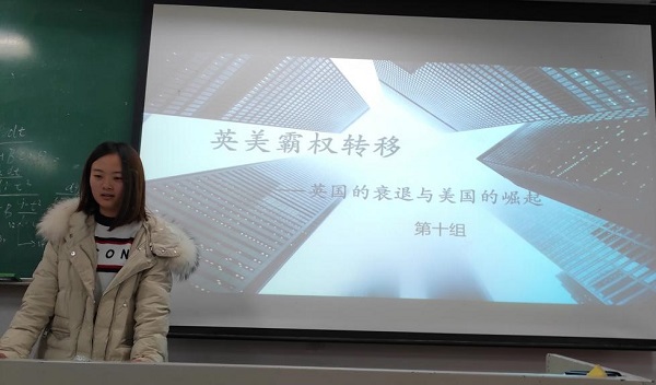 第6组详细分析了威尔逊的战略考量、对“一战”的介入和孤立政策的多个源头,并结合“修昔底德陷阱”与“金德尔伯格陷阱”的命题着重阐述了英美霸权“和平转移”的原因;第7组对霸权的定义予以了明确的界定,并聚焦两次世界大战的影响,细致分析其中的空军海军因素,最终以对霸权的理解关照当下中国的“不争霸”策略;第8组以“崛起中美国的身份摇摆&衰落中英国的均势追求”为题,着重阐述了美国秩序由内而外输出,直至美国主导国际秩序的进程,以此关照当下中美两国的关系、政治制度和意识形态;第9组以鲜明的多维视角配合十分精致的幻灯片制作,明确指出经济角度中IMF和世界银行的意义、政治角度中的体制影响、价值观中的思想更新、军事竞争角度的租借法案以及在国际分工中占据绝对优势的重要性;第10组在已有展示的基础上,突出了“陆权”兴起和工业革命对霸权转移的关键意义,阐述了美国“新霸权主义”的内涵及对新兴时势的引领,启发中国应当“明确自己的定位”、“采取适当的发展战略”并“抓住历史机遇”;在上述基础上,第11组强调了军事科技和教育体系对美国崛起的重要作用以及印度独立和欧洲内部冲突对英国霸权的致命影响。