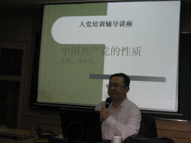 22日哲学系尚庆飞教授向学员们做了关于中国共产党性质的报告,报告以多媒体方式进行,结合社会现实变化对党的要求和党员的要求,进行了针对性探讨,使学员深受启发。
