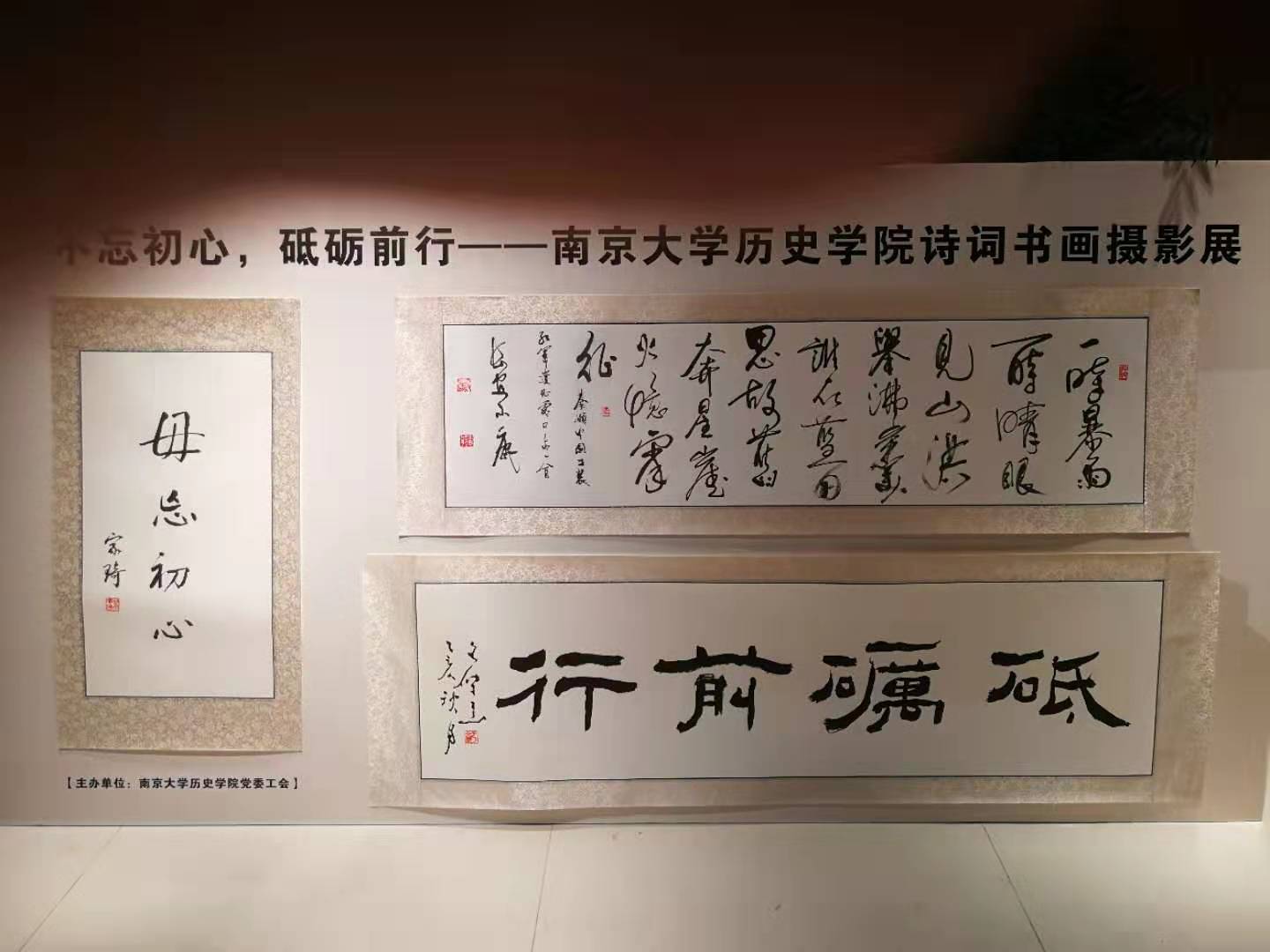 金秋十月,值中华人民共和国成立七十周年之际,历史公司党委、工会于十月下旬至十一月上旬举办了以“不忘初心,砥砺前行”为主题的教职工诗词书画展览。著名历史学家茅家琦先生、BV伟德官方网站周晓陆教授、杨休教授、于文杰教授、武黎嵩副教授,以及著名书法家曹洋教授提交了他们的书法作品,杨振亚教授、曹大臣教授分别提交了篆刻和诗词作品,部分员工书法作品也参加了展览。