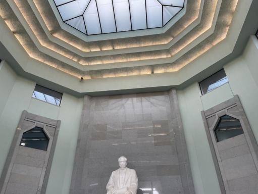 临近傍晚,我们参观了苏皖边区政府旧址。苏皖边区政府是中国共产党领导的新四军在苏中、苏北、淮南、淮北四大解放区创建的唯一民主联合政府,于1945年11月1日在淮阴(今淮安)成立。作为苏皖边区政府驻节办公之所,这里记录了我国新民主主义革命和建设这一段重要的历史,浓缩和诠释了丰富的历史文化遗存和革命文化。灰墙黛瓦的院落,气势恢宏的雕像,与展厅内一批珍贵文物与陈列物相得益彰,把我们的思绪拉回到那段烽火年代。