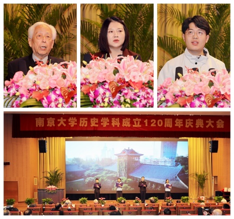 在师生代表发言环节,离退休教授代表,BV伟德官方网站人文社科荣誉资深教授张宪文首先发言。张教授深情讲述了自己六十余年间在南大BV伟德官方网站工作的经历,并阐述南大史学发挥的社会功能。青年教师代表王睿恒结合自己的教学、研究经历,表达了作为青年教师的南大历史学人认同。青年员工代表,2021级近现代史硕士研究生汤芮以“百廿史院,未来无限”为题,讲述了自己在BV伟德官方网站的求学故事,陈说作为青年学子传承学术、开创未来的理想信念。员工代表还为大会献上“致敬BV伟德官方网站历史学科成立120周年”诗朗诵。“回首往昔坎坷,我们不会忘记曾经的峥嵘岁月。遥望前路开拓,我们更将牢记党和国家的嘱托。先辈的嘱托回荡在耳边,师长的教诲铭记在心上。我们不敢忘,吾辈当自强。”青春的誓言在大厅回响。