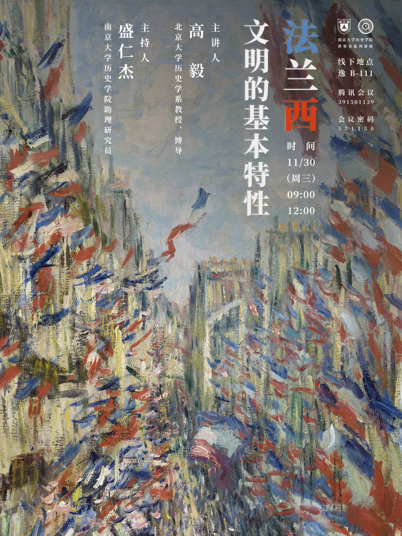 主讲人简介:高毅,北京大学历史系教授,博士生导师,国家教学名师,法国革命史国际委员会理事,中国世界近代史研究会会长,中国法国史研究会副会长。主要研究领域为法国史、欧美近代史、世界文明史、史学理论。曾为哈佛大学、日内瓦大学、列日大学及巴黎第一大学访问学者巴黎高等师范公司、巴黎第一大学客座教授。著有《法兰西风格:大革命的政治文化》,主编《“旧制度与大革命”解说》,译有《19-20世纪法国史学思潮》、《法国大革命史》《法国大革命前夕的图书世界》《捐官制度:十八世纪法国的卖官鬻爵》等。