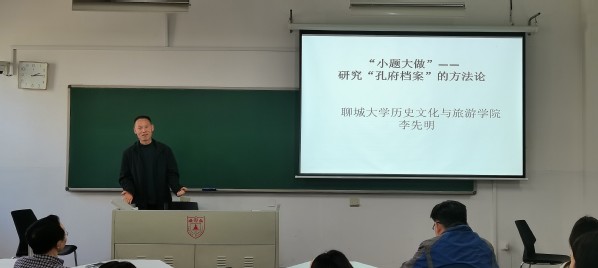 为更好地提升硕博士生学术研究能力、掌握研究方法,3月14日下午,聊城大学历史文化与旅游公司特聘教授李先明老师应邀来公司举办专题讲座,主题为“‘小题大做’——研究‘孔府档案’的方法论”,20余名硕士生、博士生积极参加并参与讨论,反响热烈。