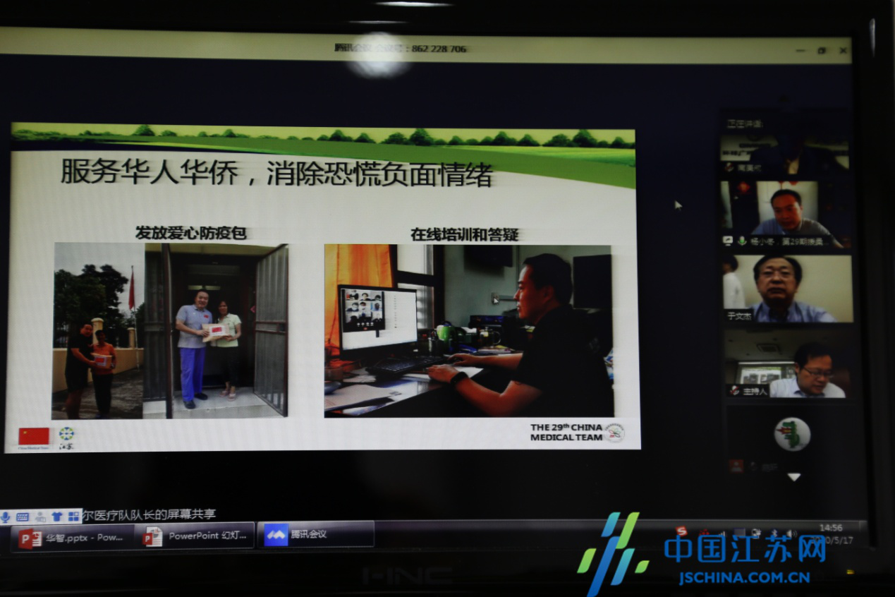 在学术研讨会“非洲连线”环节,非洲华文传媒集团董事长南庚戌,中国江苏国际经济技术合作集团有限公司津巴布韦公司经理魏伟,第29期援坦桑尼亚桑给巴尔医疗队队长、江苏省人民医院普外科主任医师杨小冬分别介绍了媒体应对、经济合作、援助抗疫的相关情况。“在积极参与桑给巴尔新冠肺炎疫情防控工作方面,我们与当地卫生部、疾控中心、世卫组织官员等组成工作小组,定期召开联席会议,研究应对疫情防控策略,期间,医疗队向桑方转发中国方案、标准等30多次。”杨小冬是本次研讨会唯一的援非医疗代表,他透露疫情发生后,中非共同抗疫一直顺利进行,在驻桑总领馆的统一领导下,医疗队与驻桑中方机构一起开展防疫物资募捐及购买活动,并向并向桑给巴尔卫生部捐赠医用外科口罩等防护物品,价值10万美元,20万件防护物资。同时,在外交部、国家卫健委的组织下,连线国内专家和桑给巴尔医务人员进行远程培训、经验交流,取得了很好的抗疫效果。