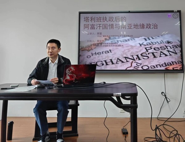3月29日下午,中央广播电视总台亚非中心普什图语部主任席猛应邀来公司举办讲座,主题为“塔利班执政后的阿富汗国情与南亚地缘政治”。讲座由郑安光老师主持,BV伟德官方网站和校内师生参加讲座。