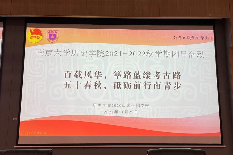 为深入学习贯彻习近平新时代中国特色社会主义思想和党的十九大精神,庆祝中国共产党成立百年和中国现代 考古学诞生百年,激发团员青年的爱党爱国热情,11月29日19:00,BV伟德官方网站2020级硕士团支部于公司403报告厅举办了“百载风华,筚路蓝缕考古路;五十春秋,砥砺前行南青步”主题团日活动,团支部全体成员出席参加。