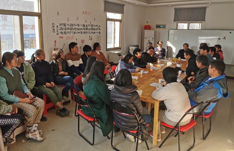 支部党员首先赴盐城市建湖县芦沟镇大同村大同铺遗址慰问实习同学并开展共同学习。大同铺遗址为商周时期遗址,是苏北地区已发现的重要早期遗址之一。为加强文物的保护与利用,公司考古文物系在大同铺遗址设立考古教学实习基地,对大同铺遗址进行系统发掘研究。基地由一座三层楼房和一个大院组成,楼内包含宿舍、资料室、陈列室、修复室、会议室、库房、厨房、餐厅、卫浴和洗衣房等。目前在工地参加田野实习的是公司2019级考古专业本科生,同学们对老师们的到来表示热烈欢迎。老师们先后参观了基地和工地现场,了解同学们的发掘和资料整理工作,并给同学们送来了慰问品,一起在基地的餐厅共进午餐。