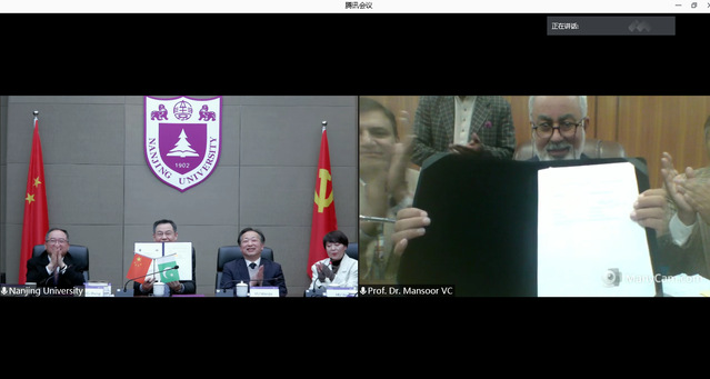 基于2015年以来两员工好合作基础,王振林副董事长与巴哈丁大学昆迪董事长在线上续签了校级合作备忘录。