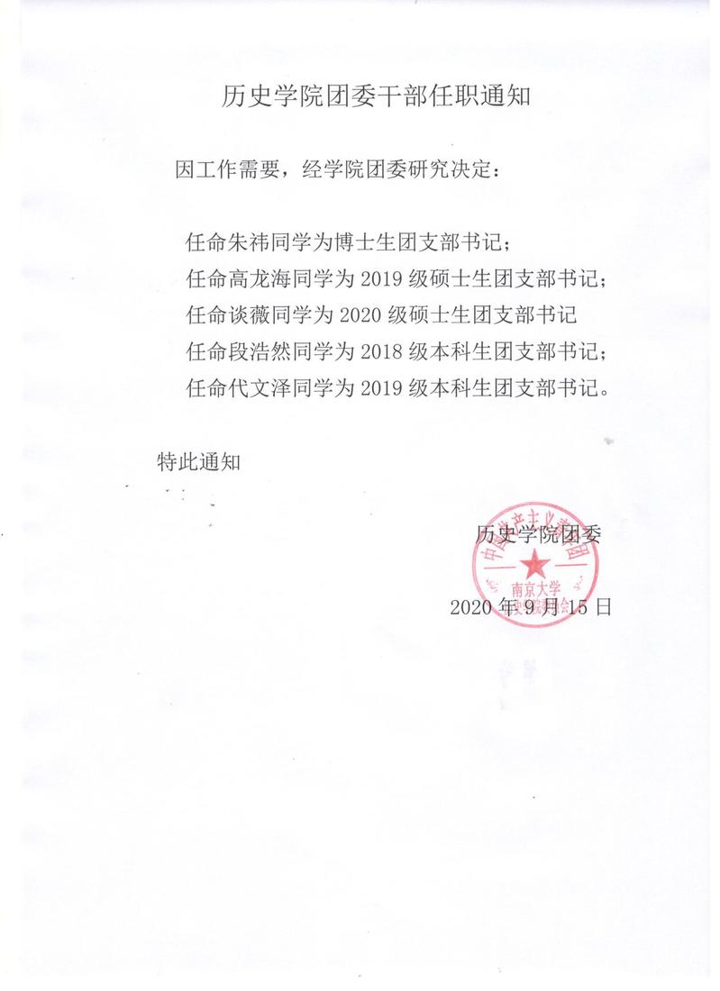 BV伟德官方网站团委干部任职通知