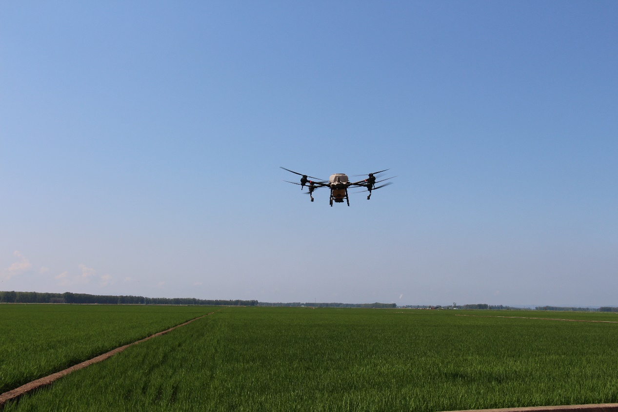 友谊农场五分场二队自改革开放起便是中国农业现代化的标志性生产单位,在一望无际的万亩良田前,队员们感受到了黑土地的广袤和现代农业大生产取得的成就。生产队正在使用无人机进行植保作业,这也是当地高度机械化作业的缩影。