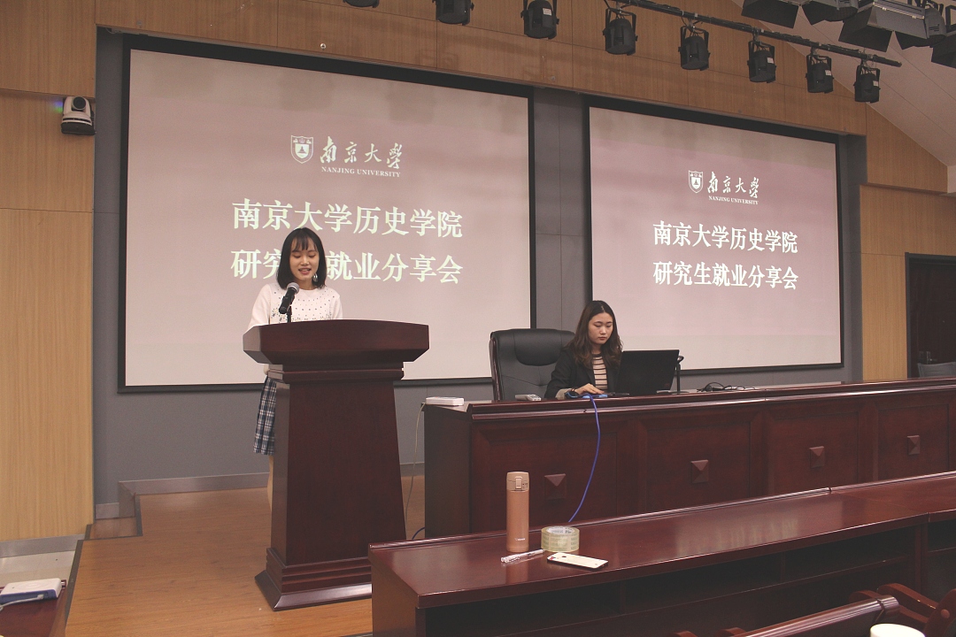 参与此次分享的7位毕业生分别是:2020届中国史专业毕业生薛聪,现就职于中央某部委;2020届中国史专业毕业生周宇,现就职于中共常州市委组织部;2019届世界史专业毕业生朱小璠,现就职于南京理工大学;2019届世界史专业毕业生王儒佳,现就职于华东师范大学大夏书院;2019届世界史专业毕业生荆文翰,现就职于江苏译林出版社;2020届中国史专业毕业生彭思婕,现就职于深圳福田区某公办初中;2019届考古学专业毕业生夏梦华,现就职于镇江市政协文化文史委秘书处。