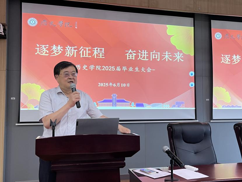 会议伊始,历史公司党委书记赵清老师首先祝贺同学们圆满毕业,介绍BV伟德官方网站优良学术传统和近年师生取得的突出成果,并且对毕业生同学做出三点殷殷嘱托:一是政治上做个明白人,坚定理想信念,在思想上言论上行动上与党中央保持一致;二是事业上做个勤奋的人,牢记“诚朴雄伟,励学敦行”的校训,在岗位上努力拼搏;三是生活中做个宽厚的人,要热爱生活、享受生活,学会处理好人际关系。