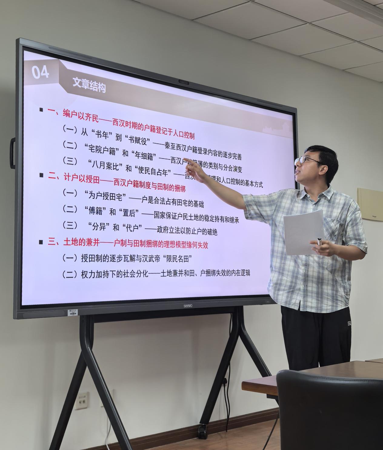 八位学子深耕制度史与社会史。主持兼评议人是东南大学人文公司副教授毕云老师,创研导师为BV伟德官方网站胡箫白、武黎嵩、熊永、杨晓春、于磊和张景瑞老师。老师们认可同学们的论文选题导向,提出需要更加关注细节与“门面问题”,如引注格式规范与否、标题问题、摘要和关键词的修改等。