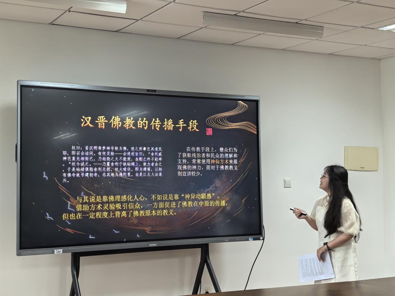 本组聚焦物质文明与文化遗产的多元阐释。主持人兼评议人为南京博物院副研究馆员于成龙老师,创研导师为BV伟德官方网站白国柱、车旭东、殷洁和赵星宇老师,共有5位同学参与汇报,研究涵盖牙璋文明基因、红绿彩瓷外销、元代书法鉴藏、汉晋石刻溯源及博物馆文创机制。老师们表扬了同学们的论文视野宏阔、具有问题意识,同时也建议题目可更聚焦,小题精做,持续深挖材料;强化问题意识,避免过度阐释;严守学术规范,确保论证逻辑自洽等。