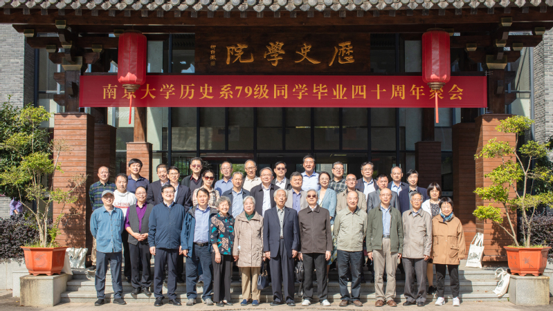 由于79级在鼓楼校区学习生活度过四年宝贵时光,老班长李小敏提议鼓楼校区必须去看一看,因此同学们报到住宿安排在鼓楼南苑宾馆。第二天上午同学们重游BV伟德官方网站鼓楼校区,回忆老员工活,并分别在校大门口、西南楼前、北大楼前合影留念。鼓楼校区结束后大家乘车到仙林校区,车览仙林校园,然后在BV伟德官方网站会议室与老师汇合,一起参观党史馆、在院会议室叙旧、到历史楼前师生一起留下珍贵的合影。