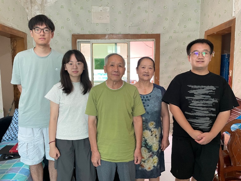 图为李佳俊老人(左三)及家属与实践团队成员合照