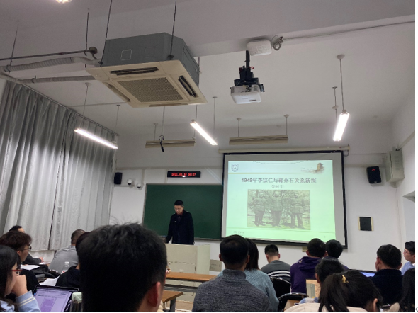 第二位报告人是中国近现代史2019级博士生朱时宇,题目是《1949年李宗仁与蒋介石关系新探》。该文利用丰富的档案、日记、回忆录等史料,从李宗仁及桂系内部情况的角度入手,对于桂系领袖李宗仁与蒋介石的关系进行了新的梳理,作者认为1949年蒋、李互动关系的诸多现象,既反映了蒋长期以来的集权统治对国民党造成的影响,亦体现了蒋与地方实力派之间复杂多面而又循环往复的互动模式。