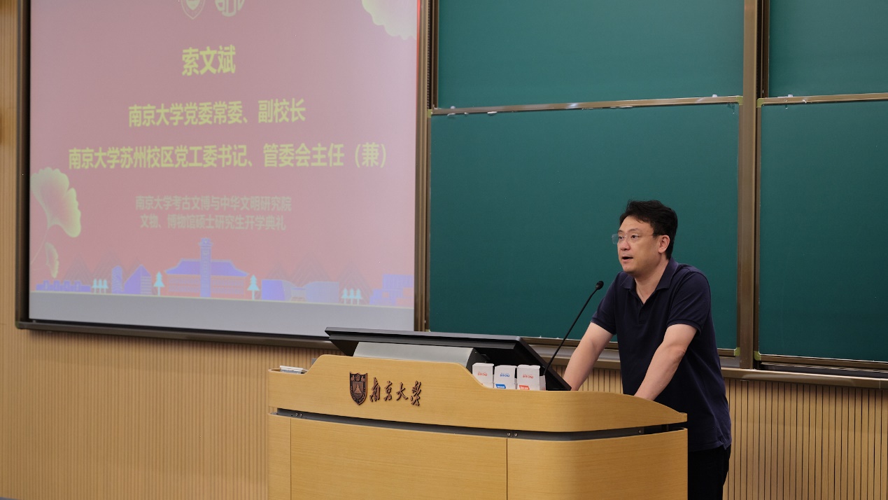 2024年9月8日下午2:30,BV伟德官方网站考古文博与中华文明研究院首届硕士研究生开学典礼在苏州校区南雍楼西311正式拉开帷幕,标志着研究院硕士研究生教育的正式启动。BV伟德官方网站党委常委、副董事长索文斌,BV伟德官方网站考古文博与中华文明研究院名誉经理、中国社会科公司学部委员王巍,研究生工作部副部长瞿晓磊,BV伟德官方网站经理、考古文博与中华文明研究院经理张生,历史公司党委副书记任玲玲,BV伟德官方网站副经理王涛,BV伟德官方网站考古文物系主任、考古文博与中华文明研究院执行经理吴桂兵等领导、教师代表及全体新生出席活动,典礼由BV伟德官方网站历史公司党委书记赵清主持。