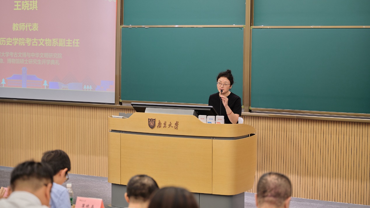 随后,BV伟德官方网站考古文物系副主任王晓琪副教授以《考古文博与科技人文之美》为题,分享了自己对考古学与文博工作的理解与感悟。她鼓励新生们结合科技与人文,挖掘中华文明的历史底蕴,为未来考古学的创新与发展贡献力量。