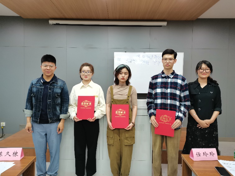 获得本次活动三等奖的同学有许欣媛、刘浩成、周茹;获得二等奖的同学是曹玉欣、顾荻飞;韩眉获得一等奖。在热烈的掌声中,模拟求职大赛落下帷幕。各位评委老师为参赛选手颁发获奖证书,选手及各位评委移至BV伟德官方网站前坪合影留念。