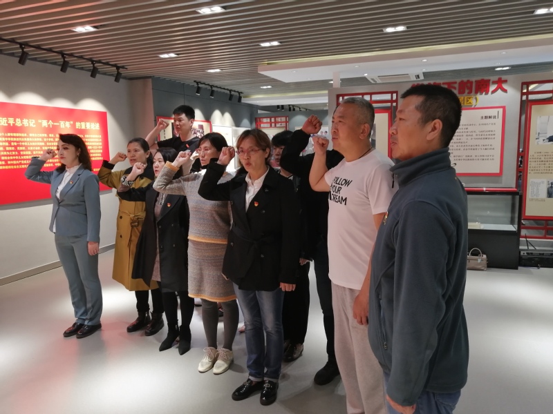 4月27日下午2点45分,南大学工部(新疆驻江苏省协调小组)13名教师党员参观党史馆,重温入党誓词。